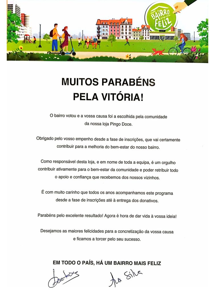 EB1 Nº1 de Setúbal (Areias) – Muitos Parabéns pela Vitória! Publicado em Novembro 17, 2025Novembro 17, 2025 Por AESG Bairro Feliz Pingo Doce É com grande satisfação que informamos que a EB1 Nº1 de Setúbal (Areias), ganhou o programa “Bairro Feliz” com o projeto “Brincar com Saber”, que visa a aquisição de jogos lúdicos para o recreio.